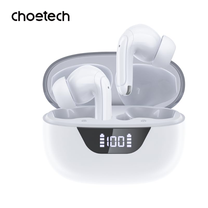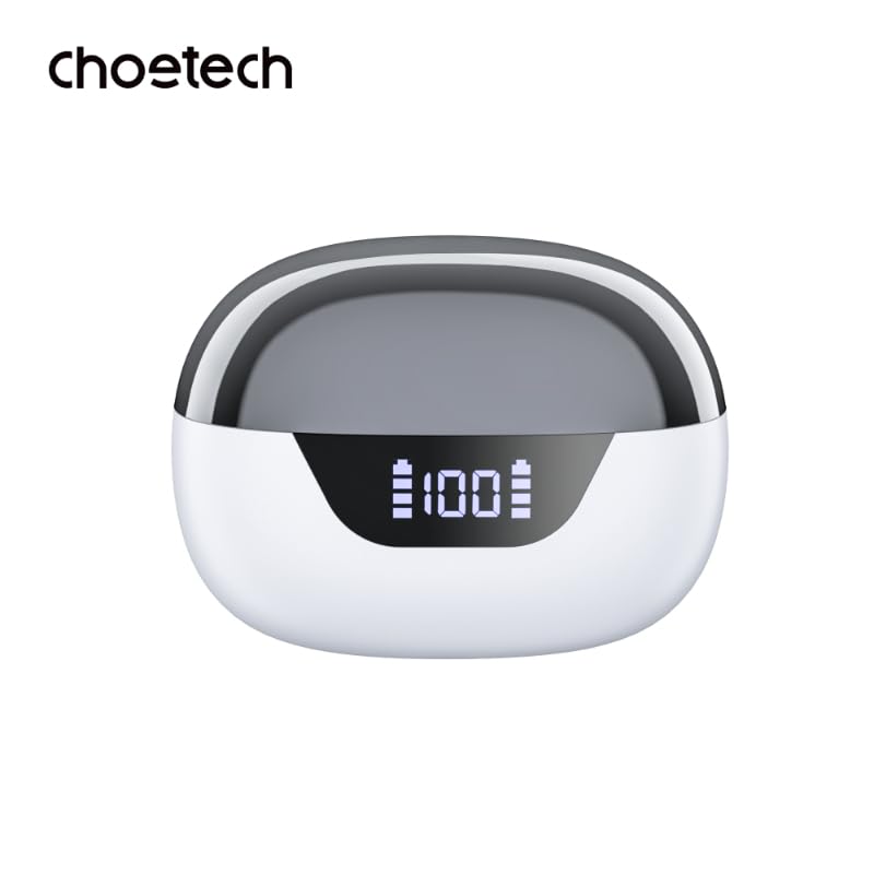 CHOETECH - سماعات أذن تشويتيك أورا BH-T60 بلوتوث 5.3 ENC و ANC TWS رقمية، مع خاصية إلغاء الضوضاء النشطة، وشاشة ليد، ومشغلات 13 ملم، وبطارية تدوم 30 ساعة، ومدة تشغيل واحدة من 6 إلى 8 ساعات، وتصنيف IPX4 - أبيض