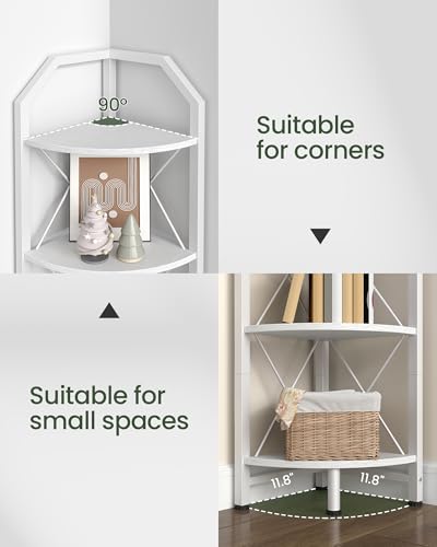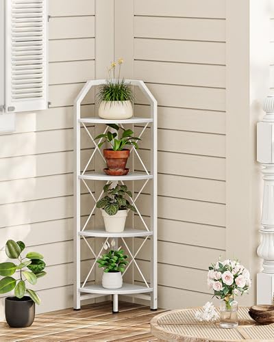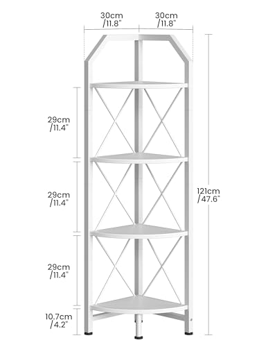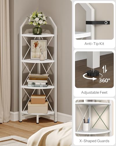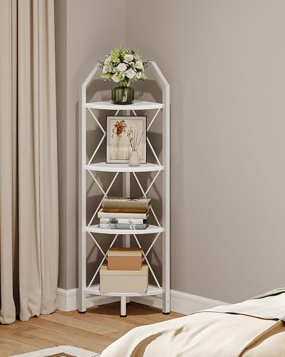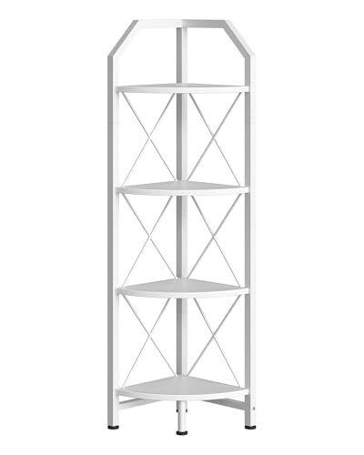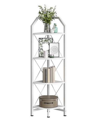 CHOEZON - رف زاوية من 4 طبقات من شوزون، رف كتب زاوية صناعي، حامل تخزين زاوية 1.2 م، رف عرض حامل النباتات، خزانة كتب زاوية لغرفة النوم وغرفة المعيشة والمكتب المنزلي، ابيض TCJ09WB