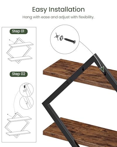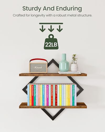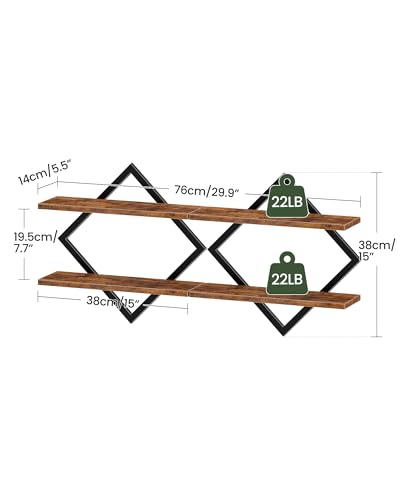 CHOEZON - أرفف معلقة مزدوجة الطبقات TBJ01P2BF تثبت على الحائط لغرفة المعيشة أو غرفة النوم أو المطبخ أو المكتب أو للدراسة من تشوزون، مجموعة من قطعتين، بني ريفي