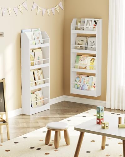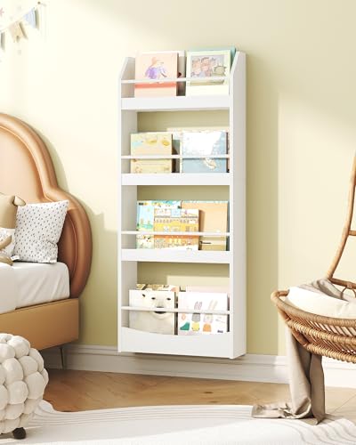 CHOEZON - رف كتب للأطفال من تشوزون، منظم أرفف كتب يثبت على الحائط من 4 طبقات، رف تخزين للكتب، خزانة كتب لغرفة الأطفال وغرفة اللعب والحضانة، لون أبيض - طراز MCW04WB
