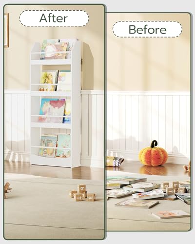 - مساحة تخزين كبيرة: مقاس 40 سم طول ×15 سم عرض × 1.04 م ارتفاع، يوفر رف الكتب المكون من 4 طبقات مساحة تخزين واسعة تكفي لـ 20 كتابًا مصورًا للأطفال وعرض الكتب والصحف والمجلات والألعاب الصغيرة، مما يخلق بيئة قراءة منظمة وممتعة.