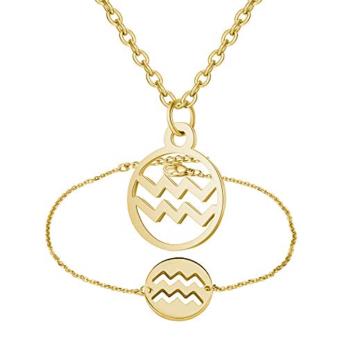 choice of all - تشويس اوف اول طقم مجوهرات مكون من 12 قلادة بتصميم كوكبة الابراج الفلكية للنساء، هدية عيد ميلاد (برج الدلو)، جلد، متعدد الألوان