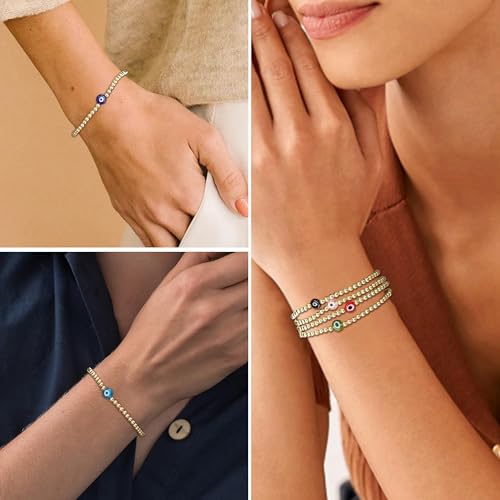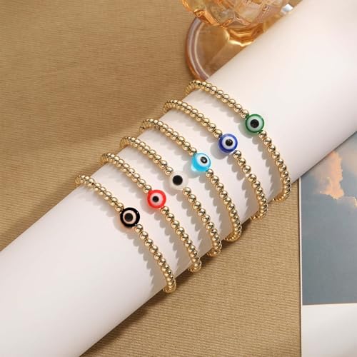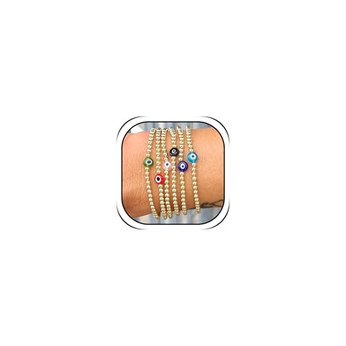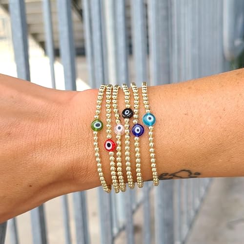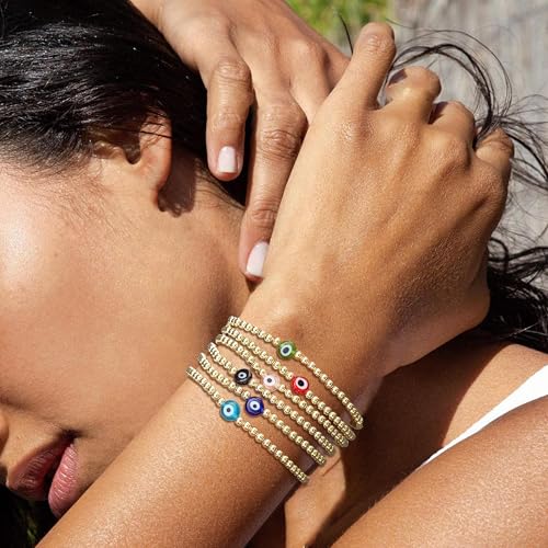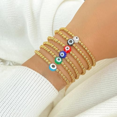 choice of all - أساور ذهبية أنيقة بتصميمات عصرية قابلة للارتداء كمجموعة ومزينة بخرز ذهبي مع حلية عين زرقاء لهدايا عيد الحب للنساء من تشويس اوف اول