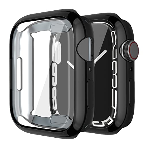 Choiche - [2 عبوة] هيكل انيق واق للشاشة لساعة ابل ووتش الاصدار 7 45 ملم شاشة حماية بمصد من البولي يوريثين المرن المقاوم للحرارة HD وفائق النحافة اي الاصدار7 - اسود لامع