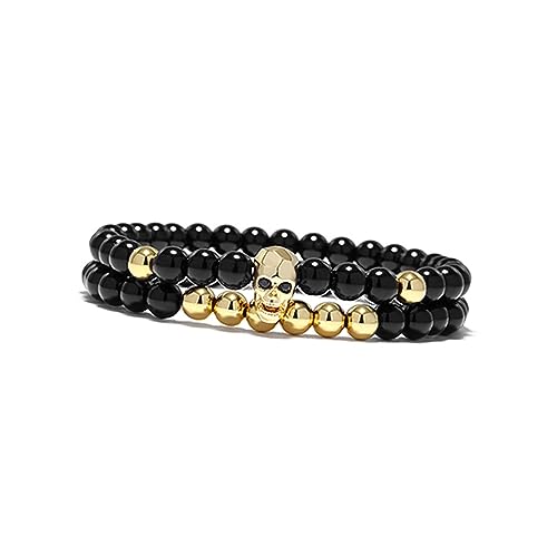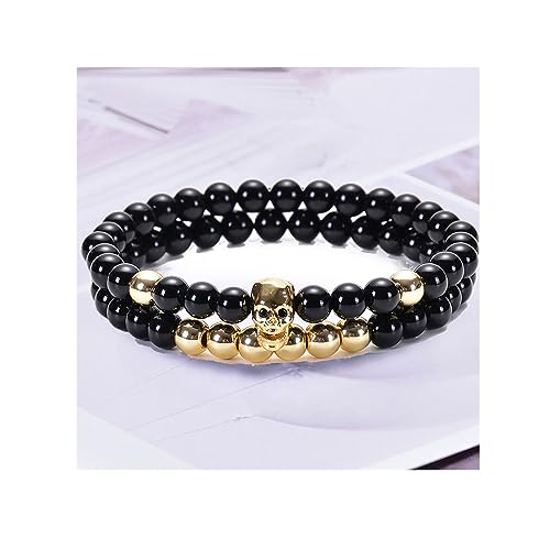 Choistily - سوار راس هيكل عظمي قوطي للرجال من تشويستيلي، سوار مرن مطرز باللون الاسود بتصميم جمجمة للهالوين، سوار مجوهرات هدية