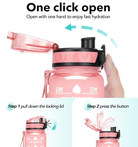 - 【سهلة الفتح ولكنها مانعة للتسرب】تتميز زجاجة المياه هذه بغطاء مانع للتسرب مع قفل قلاب لتجنب التسرب عند وضعها في حقيبتك. يتكيف الغطاء مع آلية قلب حتى تتمكن من فتحه بسهولة بيد واحدة فقط بضغطة واحدة.