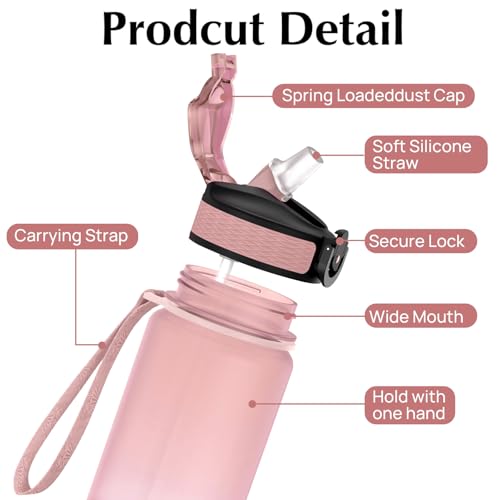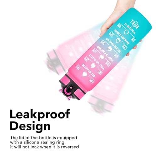 - 【اقتباسات تحفيزية وعلامات للوقت】زجاجة مياه بسعة 32 اونصة مع اقتباس إلهام فريد وعلامات زمنية، لتذكيرك بالبقاء رطبًا. يساعدك مؤشر السعة على تتبع كمية المياه اليومية. شفاطة سيليكون تجعلك تستمتع بالشرب المقاوم للانسكاب دون مجهود. منتج ضروري للأشخاص من مختلف المهن مثل الرياضيين والعمال ذوي الياقات البيضاء.