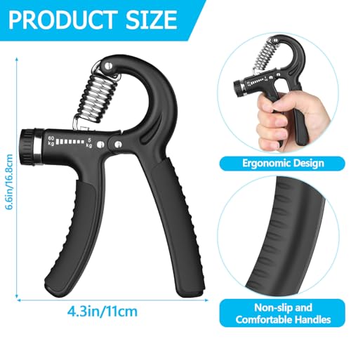 - 【تحسين قوة الإمساك واستعادة القوة】 مقوي المقبض القابل للتعديل ممتاز لتقوية اليدين والساعدين والمعصمين والأصابع. إذ تُساعد على تقوية قبضة اليد تخفيف الإجهاد، وزيادة القدرة على التحمل بسهولة وفعالية. مثالية لأي شخص يرغب في تطوير أيدي صحية قوية والحفاظ عليها.