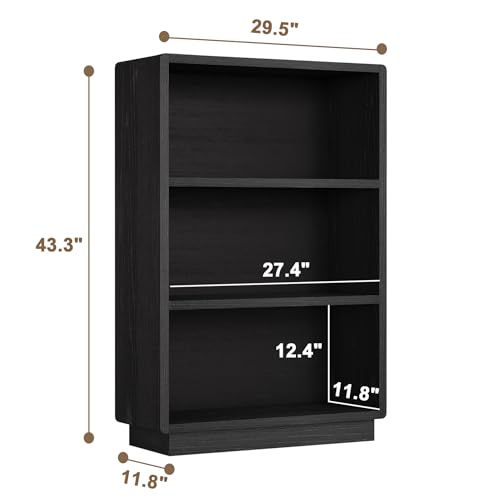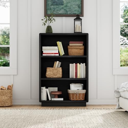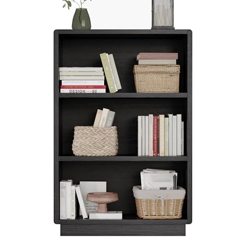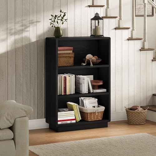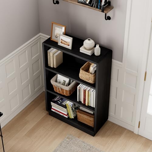 ChooChoo - مكتبة خشب بثلاث طوابق بتصميم ريفي مزودة بأرفف مفتوحة مناسبة لغرف النوم والمكاتب المنزلية من تشو تشو، لون أسود