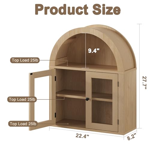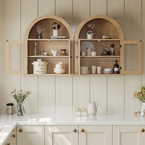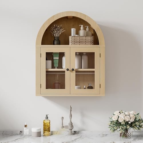 ChooChoo - دولاب حائط مقوس برف قابل للتعديل للأدوية والحمام ومناسب كمنظم تخزين يثبت على الحائط لغرفة الغسيل وغرفة الطعام وغرفة المعيشة والمطبخ، خزانة من تشو تشو (لون طبيعي)