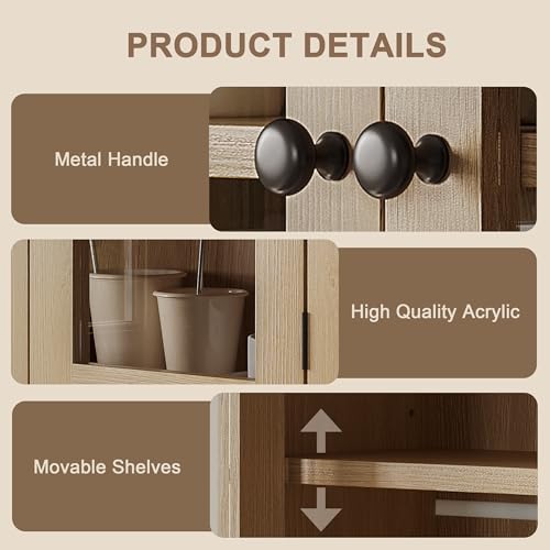 - 【تصميم قوس عصري】يتميز دولاب الحائط بتصميم مقوس فريد، وإطار مغطى بألواح بنمط ريفي، وأبواب من الاكريليك، ومقابض نحاسية، مما يضيف لمسة من الأناقة والرقي ويشكل جوًا فنيًا.