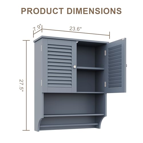 - 【مواد متينة】دولاب الحائط الرمادي للحمام الخاص بنا مصنوع من خشب ليفي متوسط الكثافة عالي الجودة، مما يمنحك استخدام آمن طويل الأمد. مقاوم للماء تمامًا ومقاوم للتآكل ومتين.