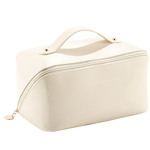 choshion - شنطة مكياج للسفر من تشوشيون، مصممة لتخزين مستحضرات التجميل بسعة كبيرة، أبيض، مقاس واحد، جلد صناعي