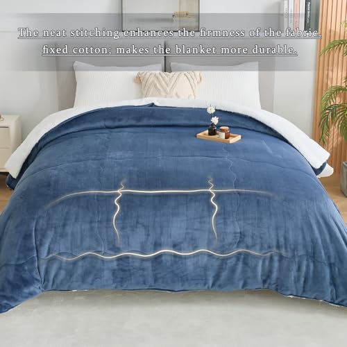 CHOSHOME - تشوشوب بطانية صوف شيربا مقاس مزدوج، ازرق كحلي