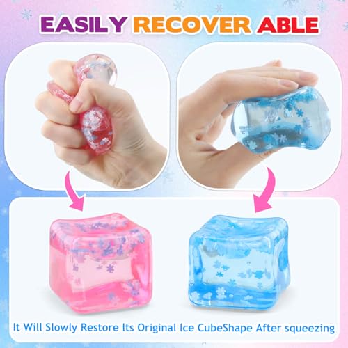 - لعبة تحسين مزاج مبهجة: ارفع معنوياتك مع مكعب الضغط الثنائي النابض بالحياة باللون الأزرق الهادئ والوردي المبهج. هذه المكعبات الإسفنجية غنية برائحة رقيقة وندفات الثلج العائمة، وهي مثالية للتخلص من التوتر وإثارة الفرح أثناء التنقل.