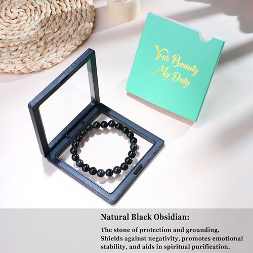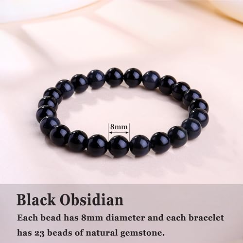 Chriscoco - سوار من الاحجار الطبيعية 8 ملم للنساء والرجال كريسكوكو طاقة كريستال كوارتز روز عين النمر افينتورين اخضر تركواز افريقي زجاج بركاني اسود حجر طبيعي