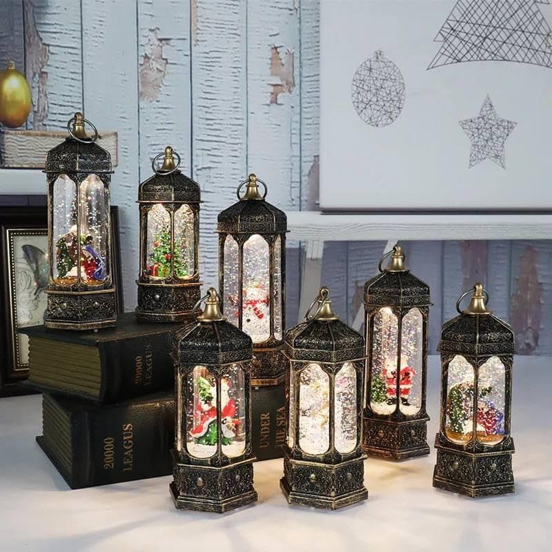 - اكسسوار على شكل فانوس كريستال سداسي الشكل مصنوع من الاكريليك بتصميم سانتا وسنو وايت يعمل ببطارية ساعة، المقاس: 18 سم.