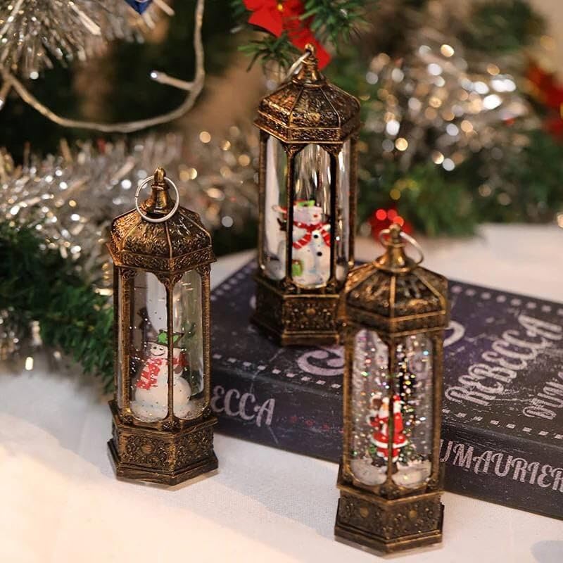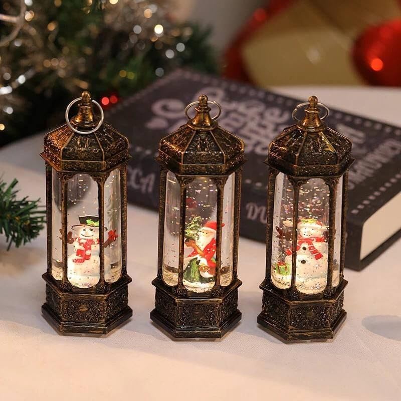 Generic - كريسماس كل اكسسورات الكريسماس فانوس سداسي البلورة الماية الزجاج في الاكليرك بابا نويل و سنووايت بتشتغل بحجارة ساعة مقاس: ١٨ سم