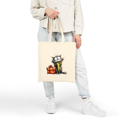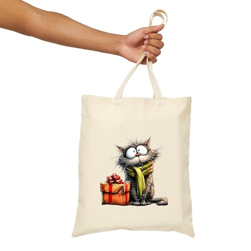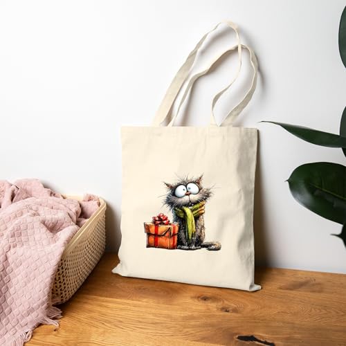 Generic - حقيبة قماش بسحاب بتصميم قطة وهدايا لعيد الميلاد للكريسماس، شنطة قطنية أنيقة صديقة للبيئة، مثالية للهدايا والتسوق في موسم الأعياد Canvas Tote Bag With Zipper-943