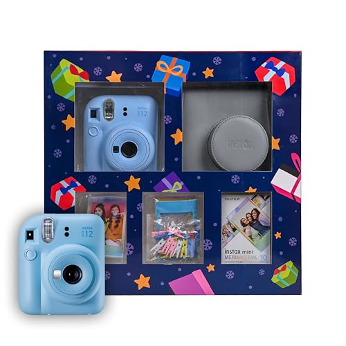 - كاميرا فورية صغيرة 12 (أزرق): أنيقة وسهلة الاستخدام، مثالية لالتقاط اللحظات أثناء التنقل.