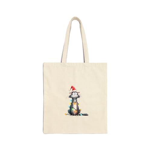 Generic - حقيبة قماشية بسحاب بتصميم قطة الكريسماس محاطة بأضواء العطلات - حقيبة يد قماشية لطيفة ترتدي قبعة سانتا مع سحاب - 929