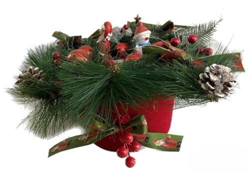 Generic - قطعة مركزية للكريسماس مع فروع الصنوبر والتوت الأحمر وكوز الصنوبر الفضي وزخارف رجل الثلج وترتيب ديكور العطلات