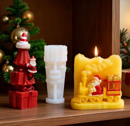 Generic - مجموعة قوالب شموع زينة عيد الميلاد، تصميم قطار سانتا كلوز ثلاثي الأبعاد، شموع شمعية حمراء وصفراء، ديكور منزلي للعطلات، شمعة على شكل شجرة عيد الميلاد