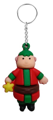 Generic - ميدالية مفاتيح بنمط شخصية قزم عيد الميلاد بطابع العطلات باللونين الأحمر والأخضر مع نجمة صفراء