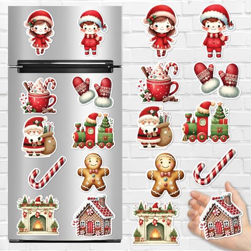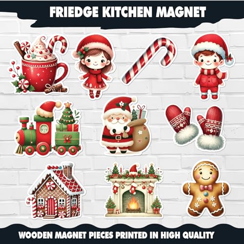 Generic - مجموعة مغناطيس ثلاجة الكريسماس - مغناطيسي احتفالي للأعياد يتضمن سانتا كلوز وهدايا وندفات الثلج وقطع السنة الجديدة للثلاجة وديكور المطبخ والحرف اليدوية وإضافة لمسة جمالية للمنزل بلون أحمر