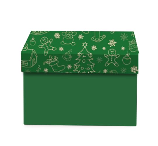 Generic - صندوق هدايا الكريسماس مع غطاء بنمط مزخرف، حاوية تخزين خضراء، صندوق تغليف بطابع العطلات، مقاس (24 × 32 × 11)