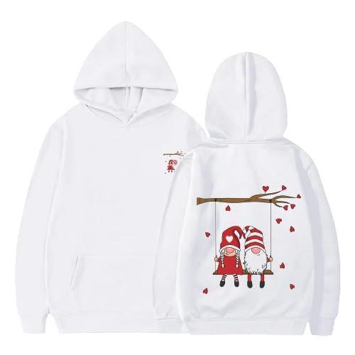 Generic - هودي كريسماس جنوم، قطن ابيض مع تصميم فرع شجرة قلب، نمط عطلة الشتاء مقاس (XL)