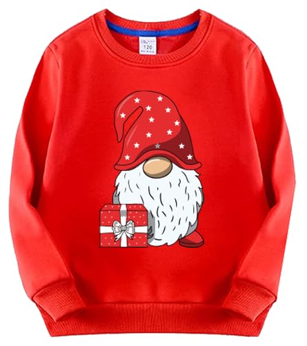 Generic - سويت شيرت كريسماس جنوم، بلوفر قطني احمر بنمط نجوم، سويتر شتوي بنمط عطلة مقاس (9-12 سنة)