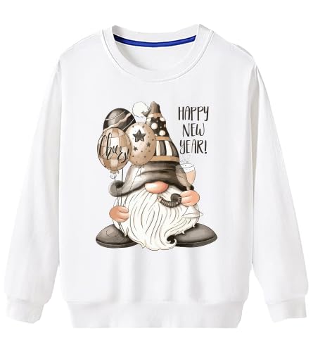 Generic - سويت شيرت كريسماس هوليداي جنوم، قطن ابيض باكمام طويلة، موضوع السنة الجديدة، تصميم طباعة جرافيك احتفالية مقاس (6-9 سنوات)