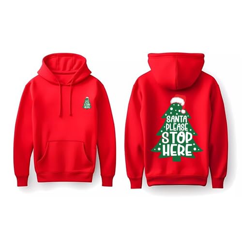 Generic - هودي عيد الميلاد للعطلات، احمر مع تصميم سانتا ستوب هير، طباعة جرافيك احتفالية الشتاء، مقاس (M)