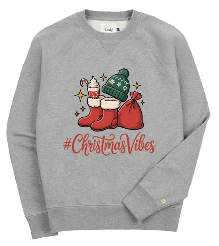 Generic - سويت شيرت عطلة الكريسماس، مزيج من القطن الرمادي، طباعة #ChristmasVibes مع تصميم حذاء الشتاء، بلوفر جرافيك احتفالي مقاس (M)