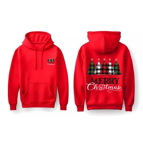 Generic - هودي للكريسماس، قطن احمر مع تصميم بافلو منقوش، ملابس الشتاء والعطلات الاحتفالية مقاس (M)