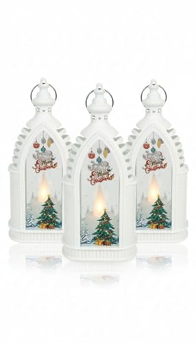 Generic - فانوس كريسماس مع إضاءة ليد، تصميم كاتدرائية بيضاء، مشهد شجرة مزخرف 3 قطع