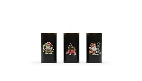 Generic - ديكور LED للكريسماس - مجموعة شموع سانتا ورجل ثلج وشموع احتفالية بدون لهب من اجل الامن، ديكورات عطلة قابلة لاعادة الاستخدام بتصميمات متعددة الاشكال (3 شمعات كريسماس سوداء وسط)