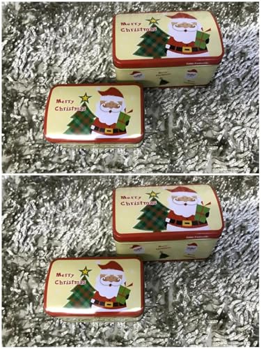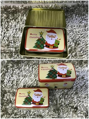 Generic - مجموعة علب معدنية للكريسماس - صناديق تخزين احتفالية فاخرة للبسكويت والحلوى والهدايا وديكورات العطلات (مجموعة من قطعتين) (مجموعتان (4 قطع))