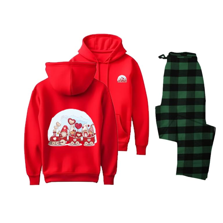 Generic - طقم بيجامة للكريسماس، هودي احمر مع تصميم جنوم احتفالي، بنطلون كاروهات اخضر مقاس (S)