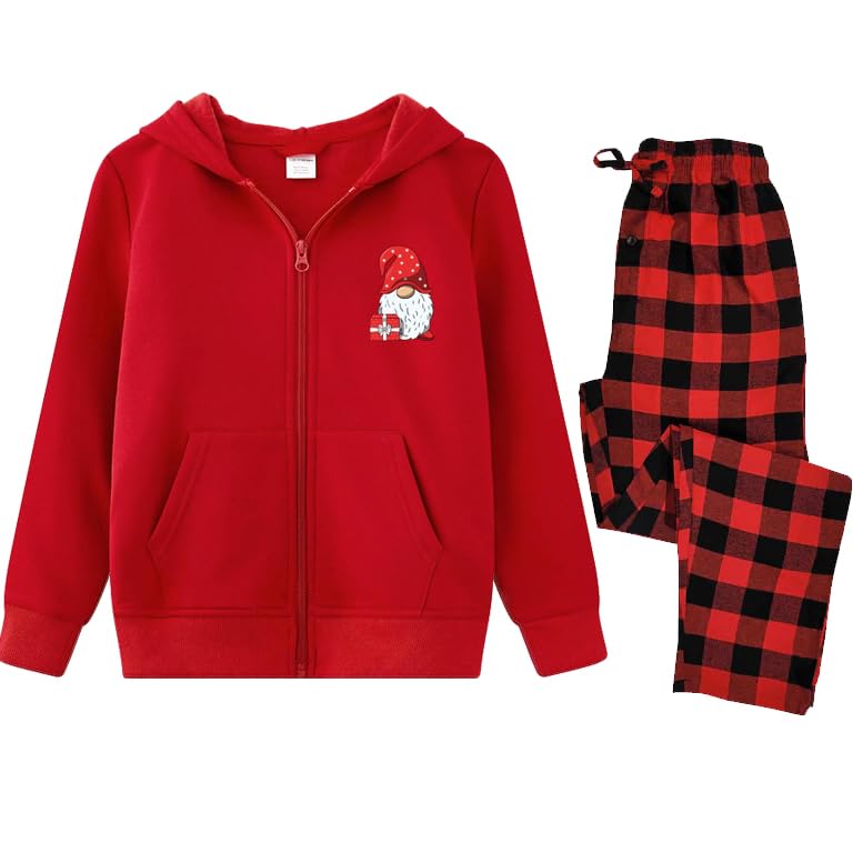Generic - طقم بيجامة للكريسماس، هودي احمر مع بنطلون منقوش بتطريز جنوم، قطعتين مقاس (L)