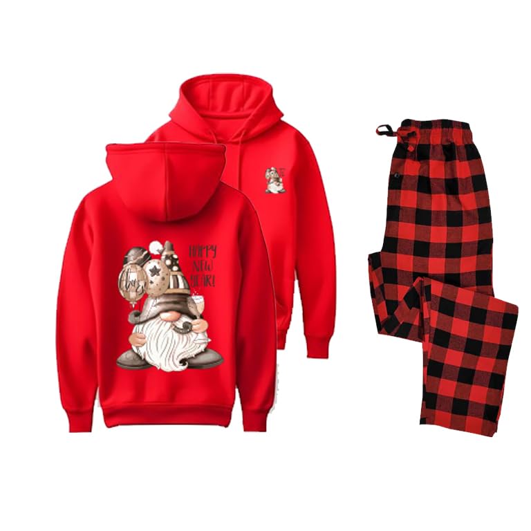 Generic - طقم بيجامة للكريسماس، هودي احمر مع طباعة قزم وسروال منقوش، ملابس نوم للعطلات مقاس (L)