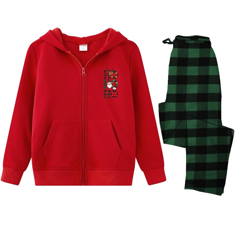 Generic - طقم بيجامة للكريسماس، هودي أحمر مع بنطلون منقوش باللون الأخضر، مقاس (S)
