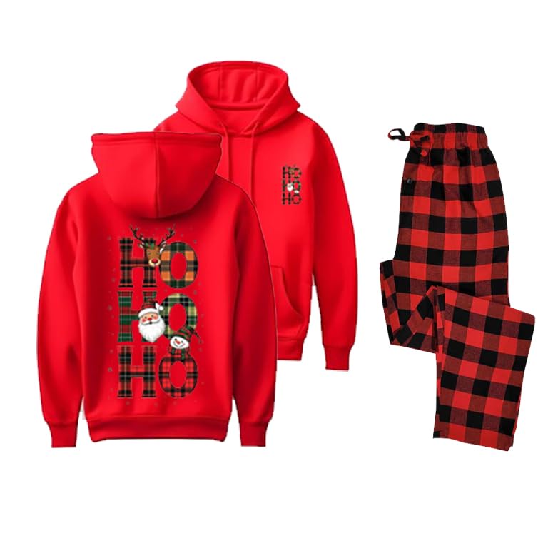 Generic - طقم بيجامة للكريسماس، هودي احمر مع طباعة اتش او وسروال منقوش، مقاس مناسب للعطلات (مقاس M)