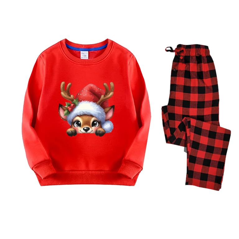 Generic - طقم بيجامة للكريسماس، سويت شيرت بنمط حيوان الرنة الاحمر مع بنطلون منقوش، ملابس نوم مقاس (3XL)