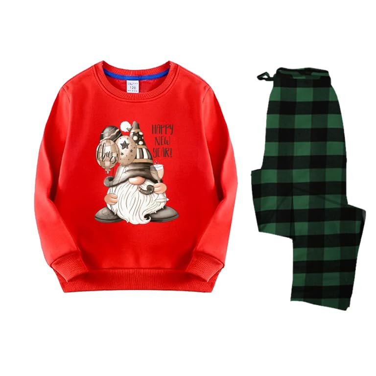 Generic - طقم بيجامة للكريسماس، سويت شيرت احمر مع طباعة جنوم، سروال اخضر منقوش، ملابس نوم مقاس (M)
