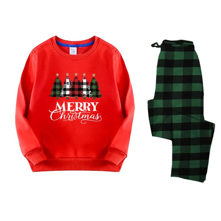 Generic - طقم بيجامة للكريسماس، سويت شيرت احمر مع طباعة شجرة عيد ميلاد سعيد، سروال اخضر منقوش مقاس (M)