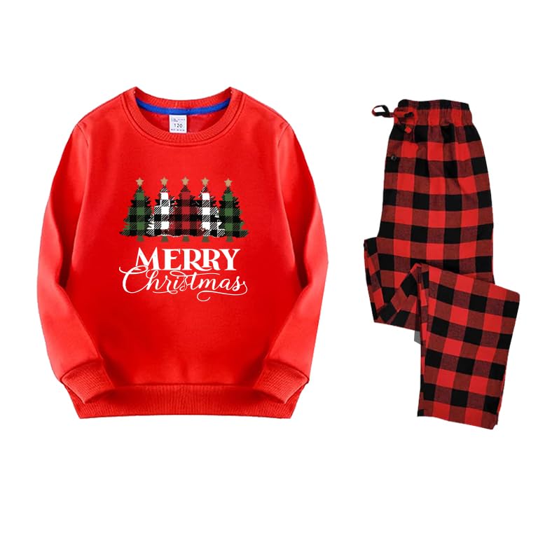 Generic - طقم بيجامة للكريسماس، سويت شيرت احمر مع طباعة شجرة عيد ميلاد سعيد وسروال منقوش، ملابس نوم للعطلات من قطعتين مقاس (M)