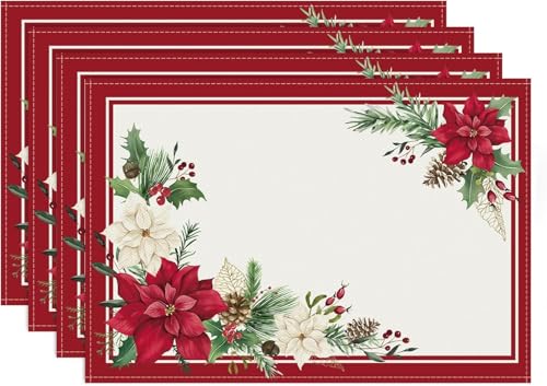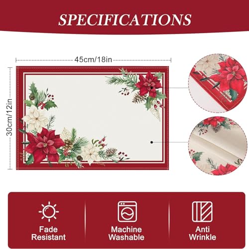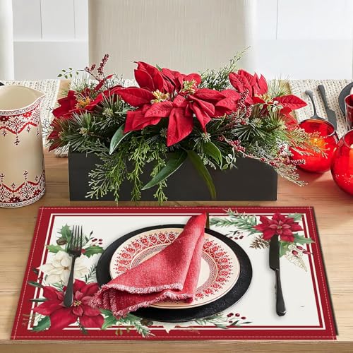 Generic - مفرش طاولة للكريسماس بتصميم زهور البويسنتا، مفارش للمطبخ وطاولة الطعام قابلة للغسل لديكور الحفلات المنزلية الداخلية والخارجية، مقاس 30 × 46 سم، 4 قطع