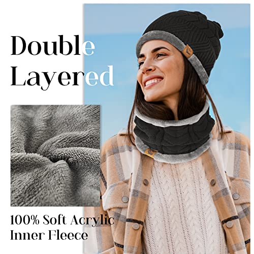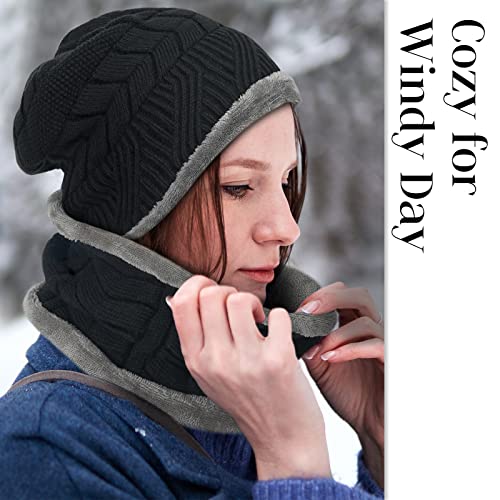 URECOVER - طاقية بونيه وسكارف بتصميم حراري شتوي بنمط تقويم العد التنازلي للكريسماس، هدايا مناسبة للتخزين بالجوارب، هدايا سانتا سرية مناسبة للتقديم للرجال والأب بالكريسماس، مجموعة متوفرة بلون أسود بمقاس واحد